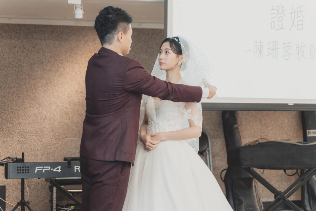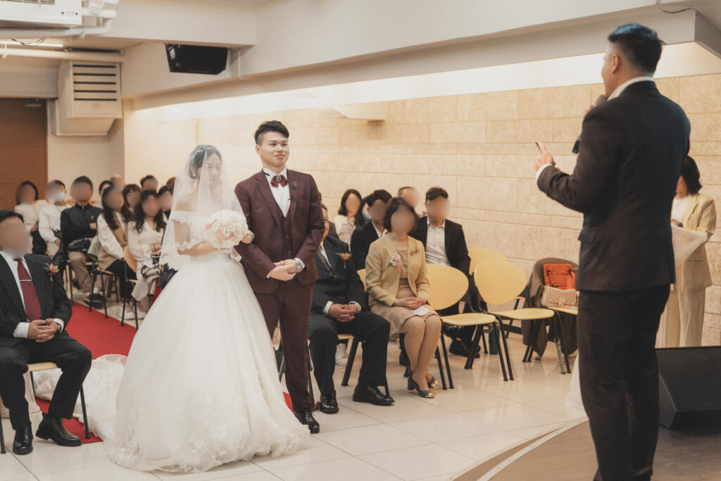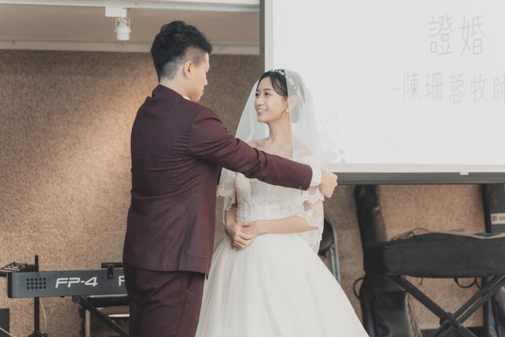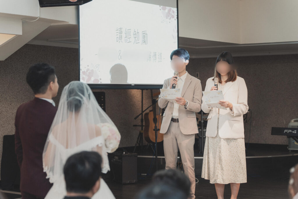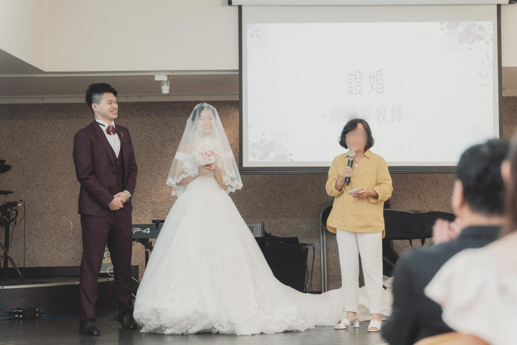我們邀請了陪伴我們多年的牧者為我們證婚,她是我們最信任的牧師。她曾是我們青年牧區的帶領者,也是陪我們上婚姻輔導課的牧師。在那段預備婚姻的過程中,她幫助我們更深地了解自己,怎麼處理衝突、面對彼此的差異,也學習如何在婚姻中彼此尊重、成全與委身。