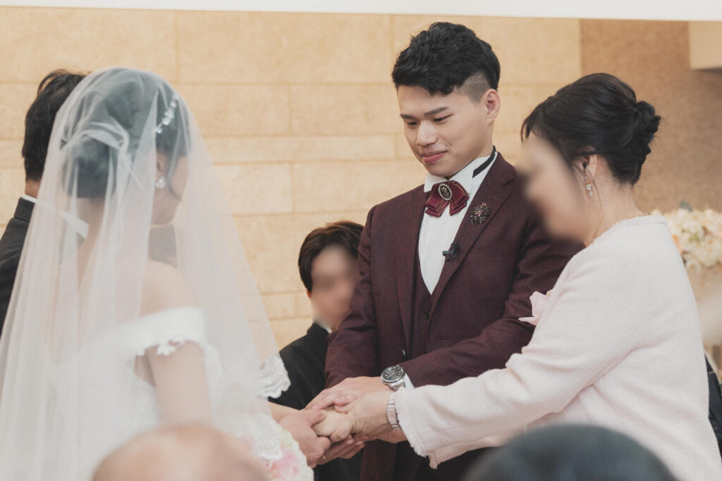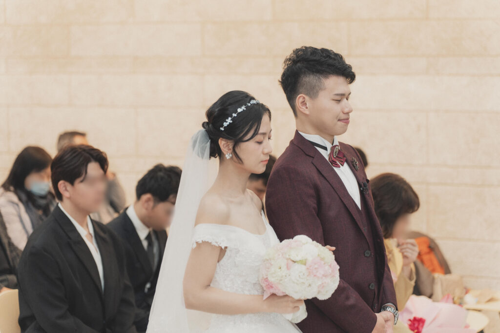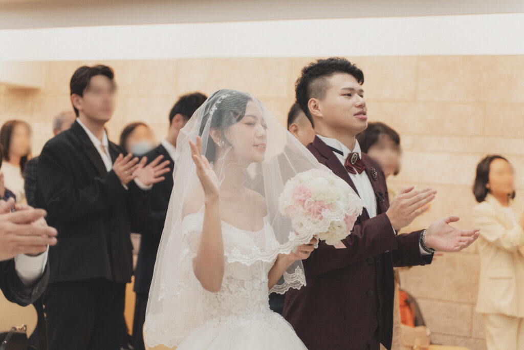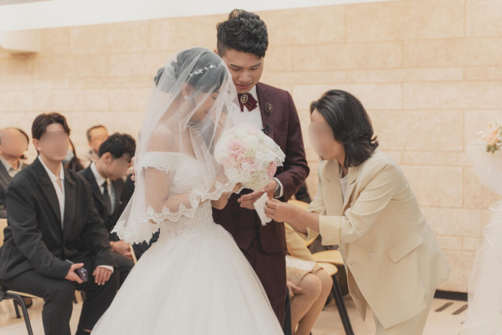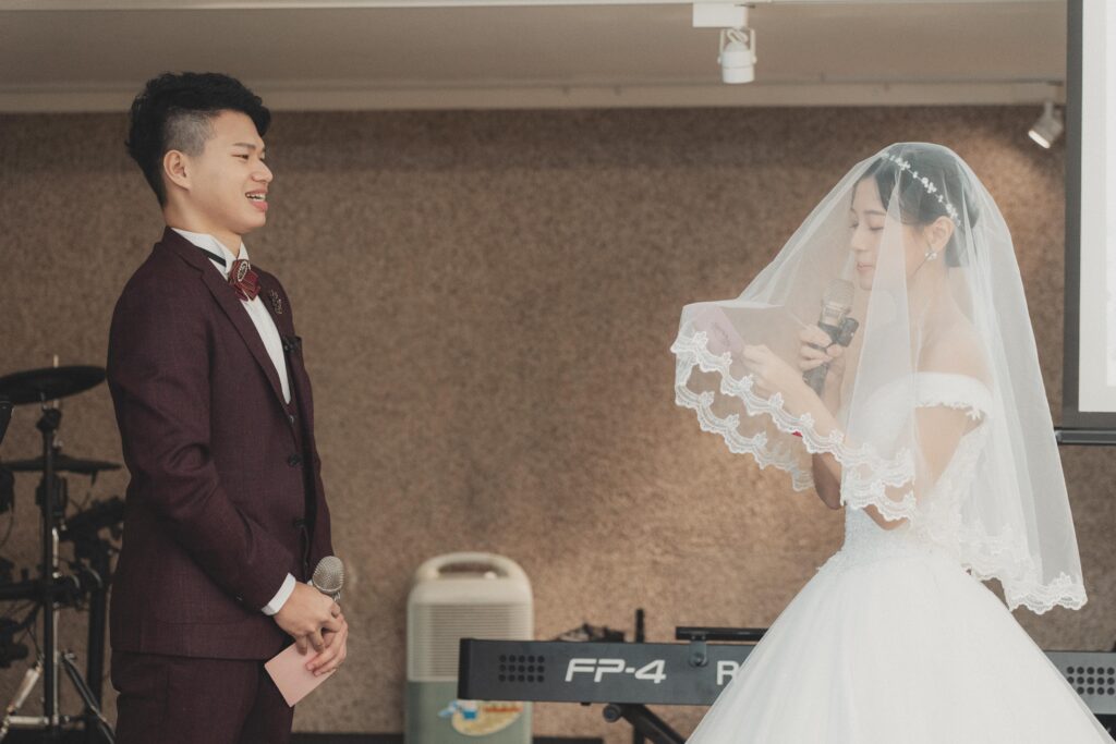 我們邀請了陪伴我們多年的牧者為我們證婚,她是我們最信任的牧師。她曾是我們青年牧區的帶領者,也是陪我們上婚姻輔導課的牧師。在那段預備婚姻的過程中,她幫助我們更深地了解自己,怎麼處理衝突、面對彼此的差異,也學習如何在婚姻中彼此尊重、成全與委身。