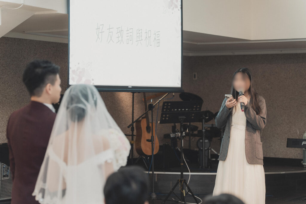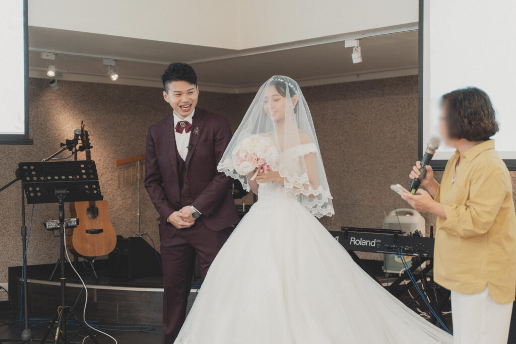 司儀是我在教會從小看到大的教會家人。她結婚時,是我擔任她的婚禮司儀,那時候我就講說:「那等我結婚時,換妳來當我的司儀喔!」沒想到這個約定這麼快實現了XD