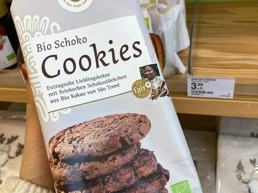 後來我又到 Müller 回購了四、五包(好誇張)。口感就像手工餅乾,巧克力味很濃郁,是我覺得很厲害的巧克力餅乾!因為是Fair trade的,所以有點小貴。
