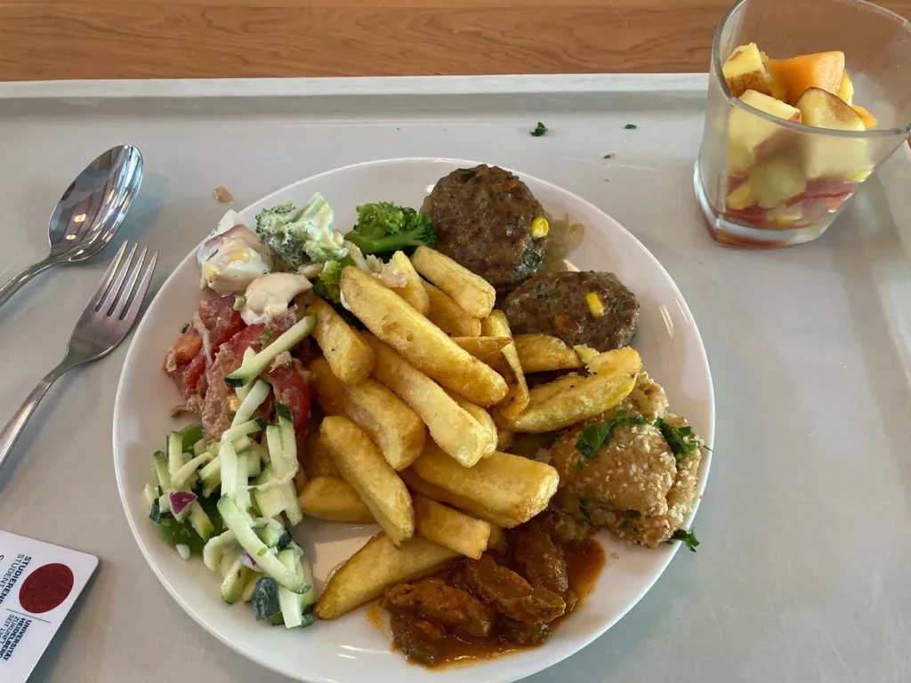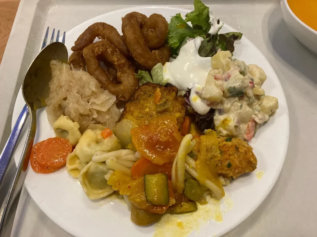 持學生證付款很便宜,夾一大盤菜大概只需要3至4.5歐,就可以吃得很飽。雖然自己開火還是最省錢,但如果沒時間煮飯,或是偶爾懶得煮飯,這裡真的是學生省錢的好去處。因為這個價格在德國外食已經是超級優惠的價格!