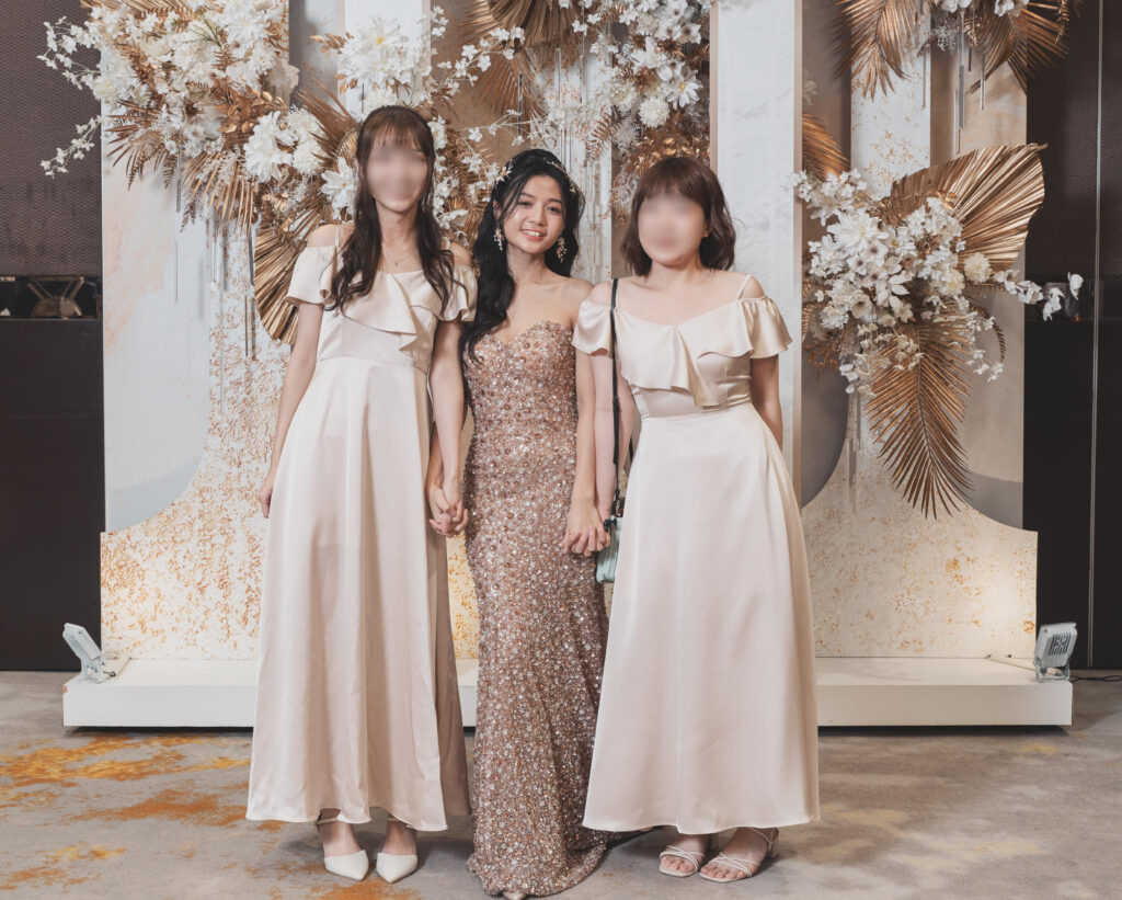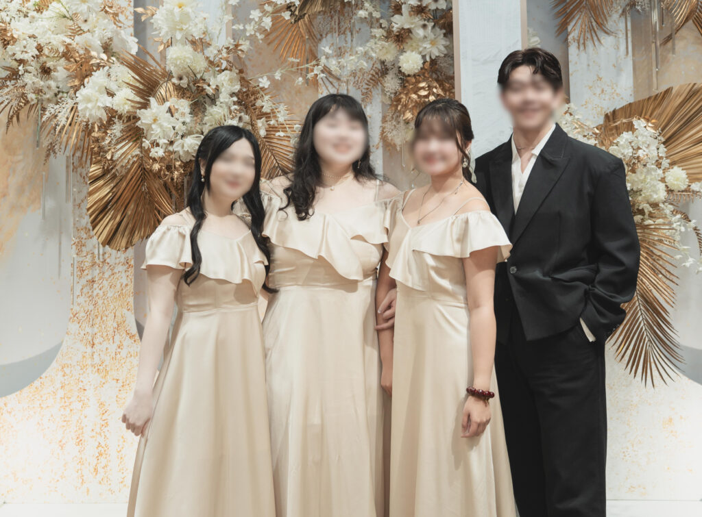 伴娘收到禮服後說,穿起來合身又舒適,有腰身卻完全不顯小腹,拍照起來超有氣質、超好看、超喜歡!然後我看了他們試穿的模樣,真的超級美,而且剪裁的裙子長度都剛剛好,那一刻,我真的覺得所有細節都值得。