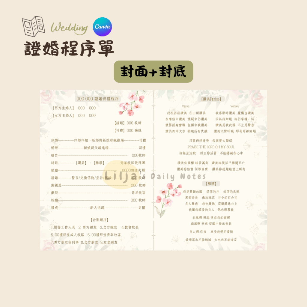 證婚程序單設計費0(新娘本人自己用Canva設計)