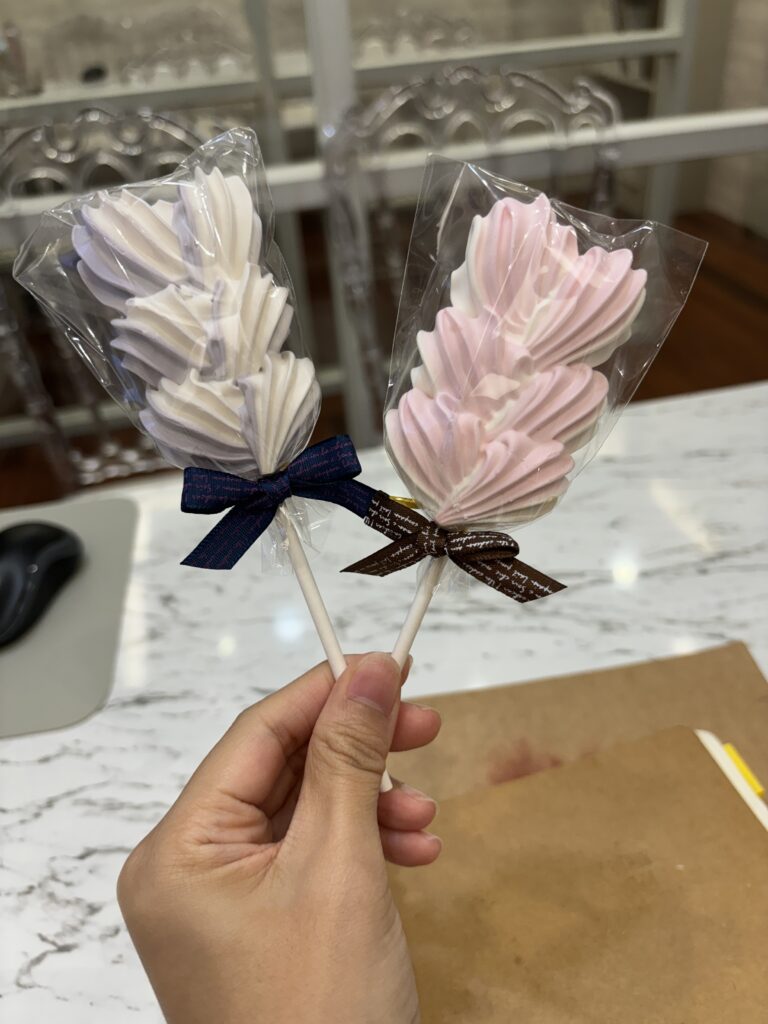在新娘房裡,我們準備了小巧可愛的 愛心馬林糖 作為探房禮。這是直接跟三重彭園加購的,一支大概18元左右。購買了80支,總共是1,590元。我自己沒吃到嗚嗚,但聽朋友說很好吃!