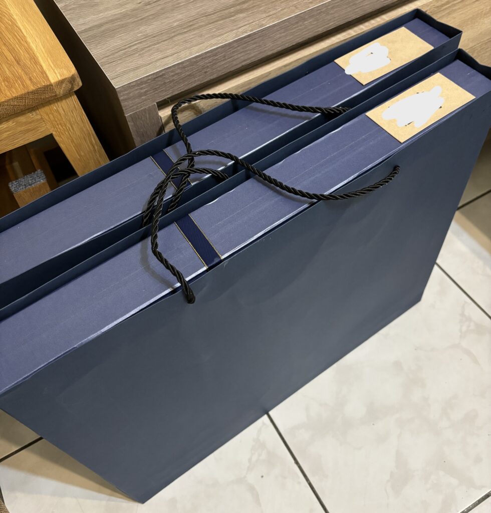 當天證婚的謝親恩環節應該好好拿出來給所有人展示一下的!可惜就用禮物袋包住了。禮物盒子和紙袋我找超級久,蝦皮基本上沒有,後來是翻遍淘寶,才找到合適用來裝禮物的袋子,因為很少有裝畫的盒子,又扁又大的,基本上很少。但我還是找到啦~完全吻合的剛剛好。